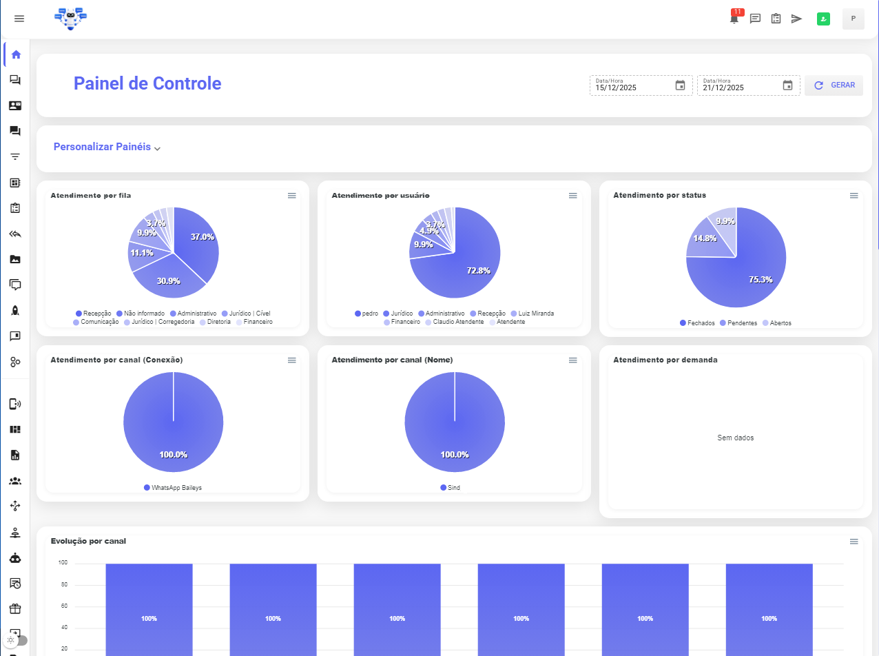 Saiba MaisAtenda chamados de todos seus canais na mesma tela, Whatsapp, Instagram, Mercadolivre, Olx, Telegram !